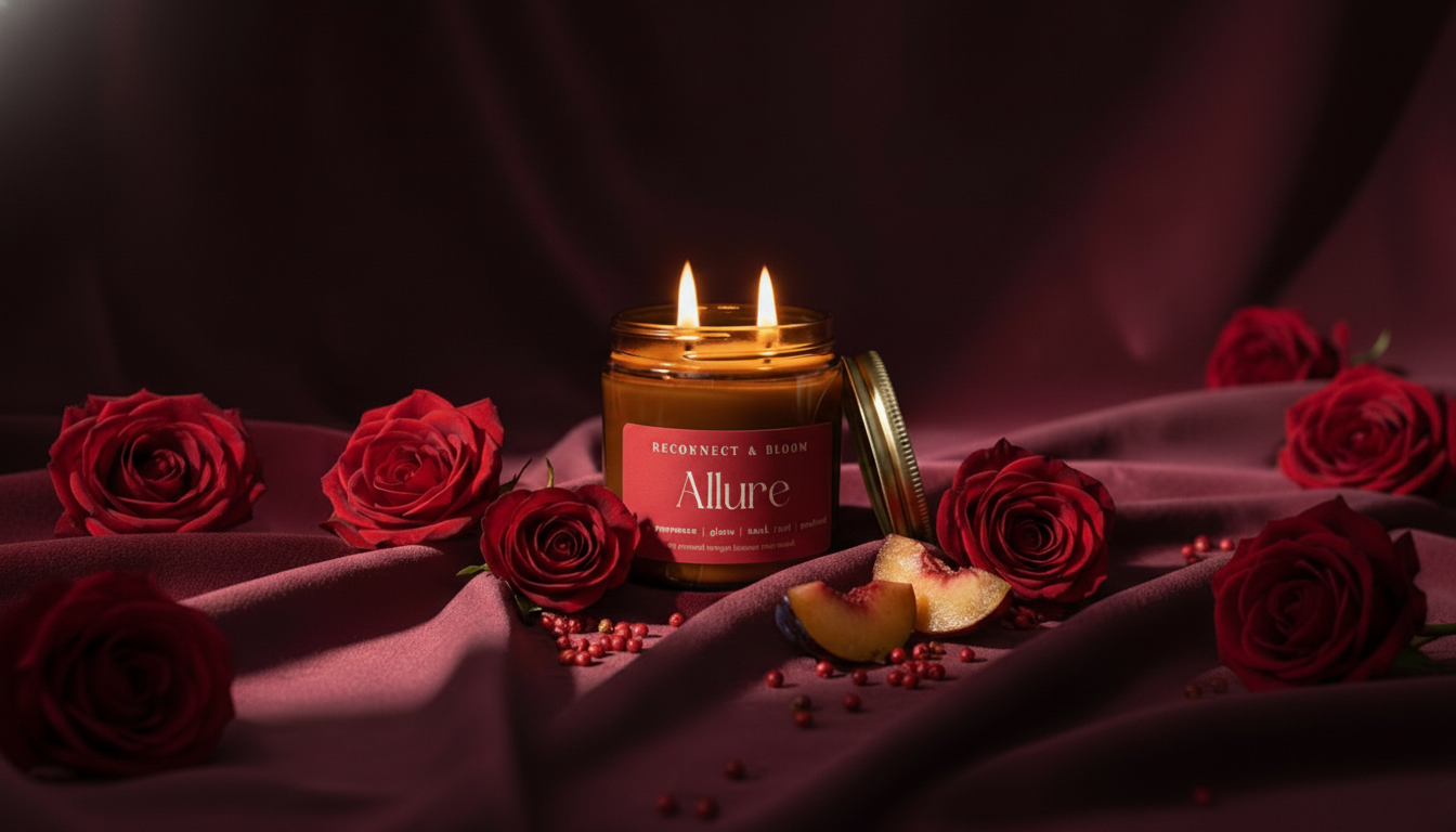 ALLURE is an invitation to be present with desire—velvet rose wrapped in sultry spice, grounded by creamy vanilla warmth.